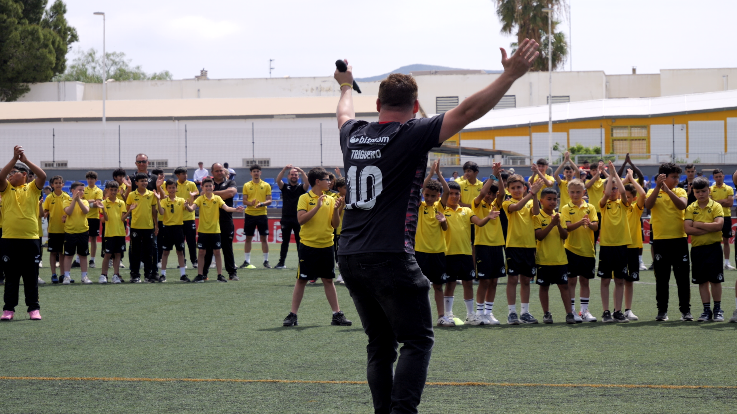 En el descanso del partido, el artista jiennense Fran Triguero presentó en directo el himno oficial del club, en un acto cargado de emoción, identidad y sentimiento. La interpretación coincidió con la presentación de los equipos base del club, reforzando un mensaje claro: el Pulpileño mira al futuro sin olvidar sus raíces.